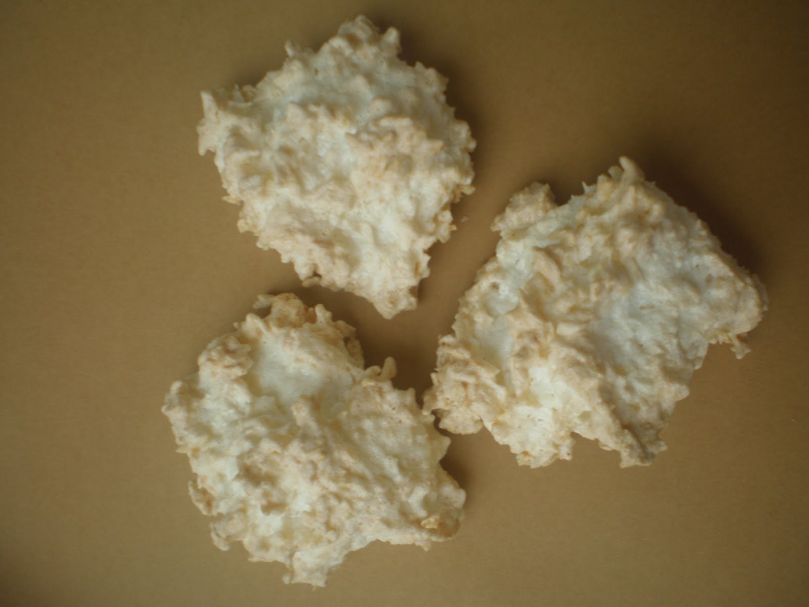 A tojásfehérjét felverjük kemény habbá. Hozzáadjuk a porcukrot, és azt addig keverjük, amíg a cukor fel nem oldódik. Kanállal hozzákeverjük a kókuszreszeléket, és kanál segítségével sütőpapírral fedett tepsire tesszük őket, úgy, hogy legyen helyük még terjedni. Az előmelegített sütőbe toljuk pár percre, aztán nyitott sütőajtónál szárítjuk, míg rózsaszínes nem lesz a teteje.